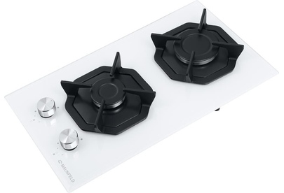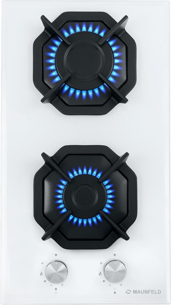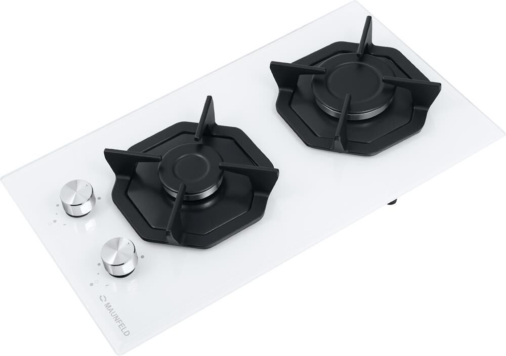 MAUNFELD Газовая варочная панель EGHG.32.2CW/G, 2 конфорки, закаленное стекло, белый