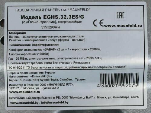 MAUNFELD Газовая варочная панель EGHS.32.3ES/G, 2 конфорки, нержавеющая сталь, серебристый