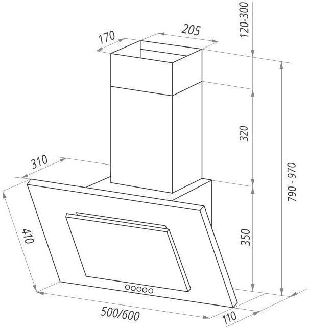 MAUNFELD Вытяжка каминная Tower 50 черный управление: кнопочное (1 мотор)