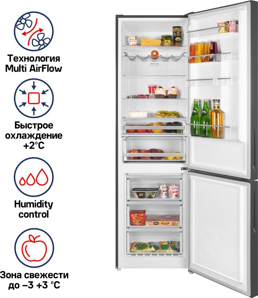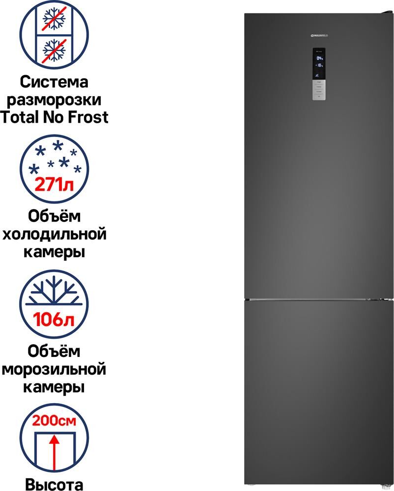 MAUNFELD Холодильник MFF200NFSE 2-хкамерн. нержавеющая сталь