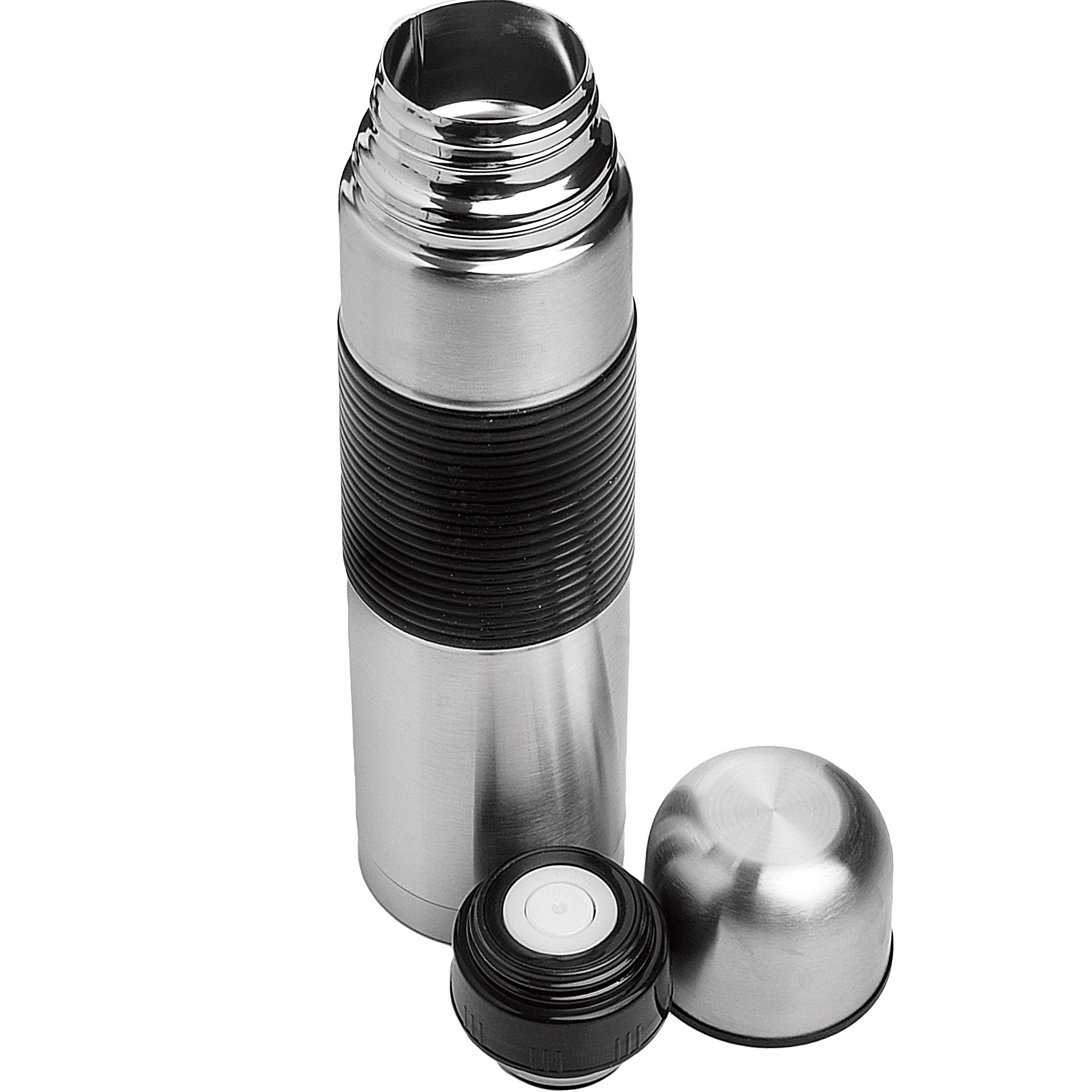 Термос МВ (х24). Корпус: нержавеющая сталь. Внутренняя колба: нержавеющая сталь. Крышка: полипропилен. Внешняя вставка: силикон. Цвет: серебристый, черный. Диаметр горлышка: 5 см. Объем: 1 л. Размер упаковки: 8,5 х 8,5 х 33 см. Вес: 565 г. Страна-изготовитель: Китай. Упаковка: коробка.
