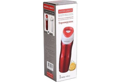 Термос-кружка «MAYER & BOCH» изготовлена из нержавеющей стали, не содержащей токсичных веществ. Двойные стенки дольше сохраняют напиток горячим и не обжигают руки. Надежная крышка с защитой от проливания обеспечит дополнительную безопасность. Крышка оснащена клапаном для питья. Основание имеет силикованную вставку для предотвращения скольжения по поверхности. Оптимальный объем термокружки позволит взять с собой большую порцию горячего кофе или чая. Идеально подходит как для горячих, так и для холодных напитков. Такая кружка может быть использована во время отдыха, на работе, в путешествии, во время поездок в автомобиле.