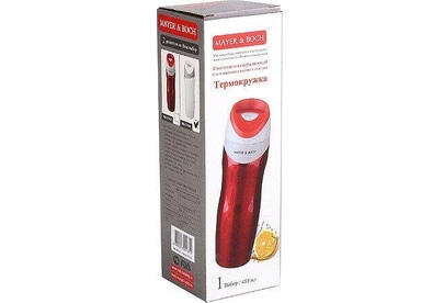 Термос-кружка «MAYER & BOCH» изготовлена из нержавеющей стали, не содержащей токсичных веществ. Двойные стенки дольше сохраняют напиток горячим и не обжигают руки. Надежная крышка с защитой от проливания обеспечит дополнительную безопасность. Крышка оснащена клапаном для питья. Основание имеет силикованную вставку для предотвращения скольжения по поверхности. Оптимальный объем термокружки позволит взять с собой большую порцию горячего кофе или чая. Идеально подходит как для горячих, так и для холодных напитков. Такая кружка может быть использована во время отдыха, на работе, в путешествии, во время поездок в автомобиле.