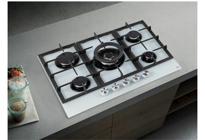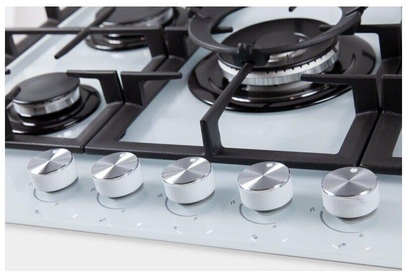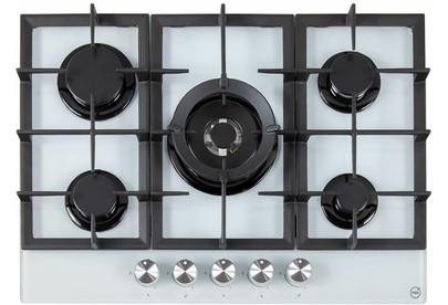 Тип панели: газовая. Установка рабочей поверхности: независимая. Материал поверхности: закаленное стекло. Материал решетки: чугун. Заводская настройка на газ: 20. Суммарная мощность газовых конфорок: 11.6. Цвет: стекло белое. Конфорка ВОК: есть. Вес (нетто): 20.42. Газ-контроль: есть. Габариты упаковки (ед) ДхШхВ: 0.78x0.59x0.151. Вес упаковки (ед): 21.27. Страна производства: Турция. Настроенный вид газа: природный (метан). Общее количество конфорок: 5. Расположение панели управления: спереди. Управление: механическое. Электроподжиг: в ручке (автоматический). Гарантия: 36 мес.. Левая ближняя конфорка: газовая, мощность 1.6 кВт, одноконтурная. Левая дальняя конфорка: газовая, мощность 1.6 кВт, одноконтурная. Средняя конфорка: газовая, мощность 4.8 кВт, двухконтурная. Размеры (ШхГхВ): 710х510х60 мм. Размеры ниши для встраивания (ШхГхВ): 560х485. Правая ближняя конфорка: газовая, мощность 1 кВт, одноконтурная. Правая дальняя конфорка: газовая, мощность 2.6 кВт, одноконтурная. Тип переключателей: поворотные. Осо