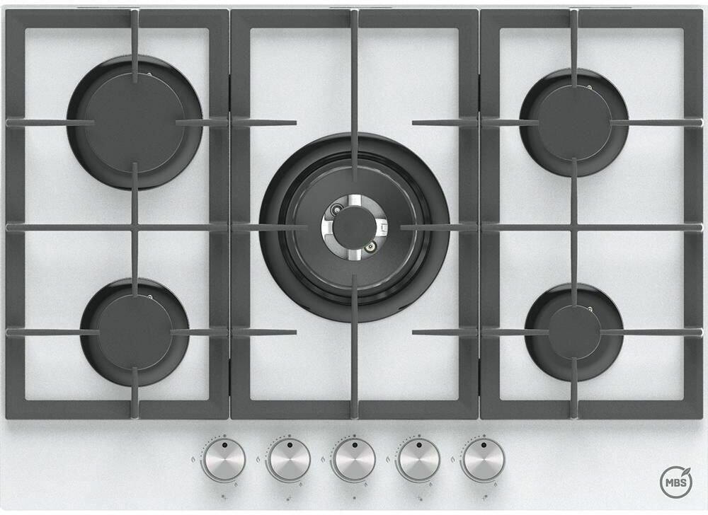 MBS Газовая варочная панель PG-801WH, 5 конфорок, закаленное стекло, белый