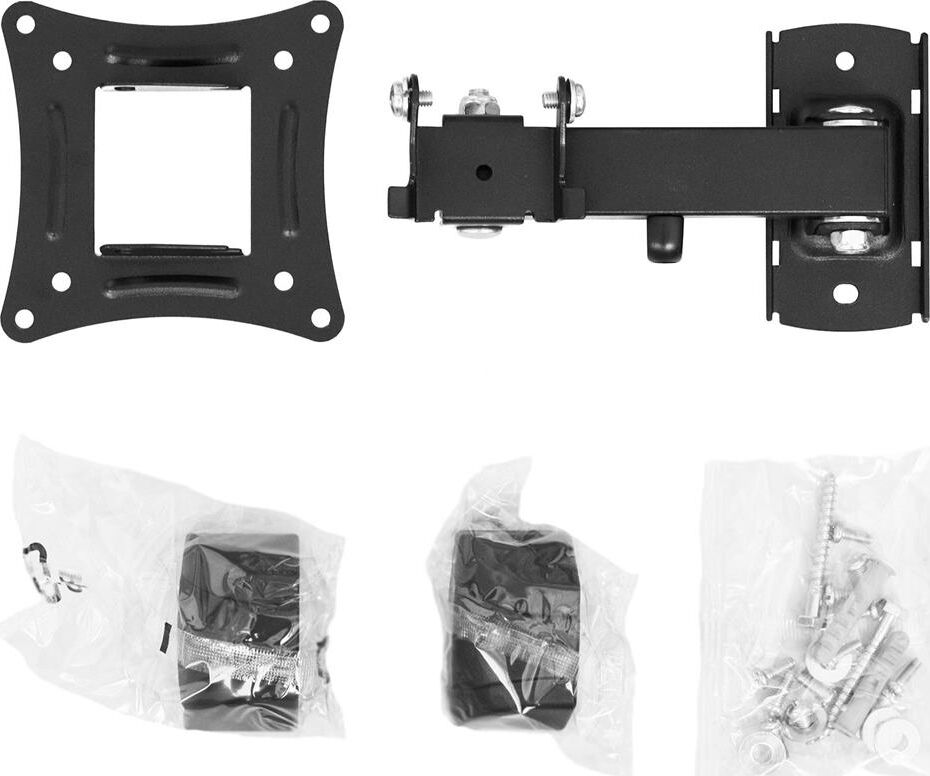 черный";"Консольный стальной кронштейн с наклоном и поворотом, Нагрузка до 15 кг, VESA 75x75 мм - 100x100 мм, 3 степени свободы: Наклон, Поворот и Смещение Угол наклона: +5њ/-15њ, Угол поворота: 180њ, Расстояние от стены 59-183 мм."