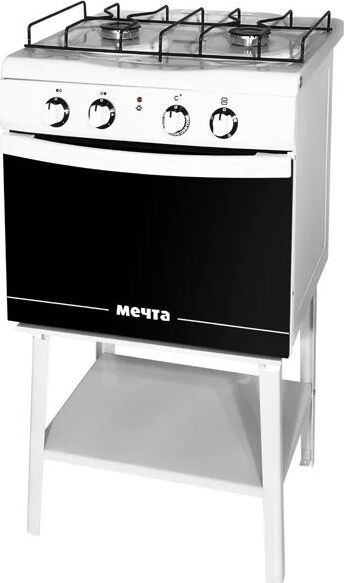 ШхВхГ: 50х85х43 см. эмалированная рабочая поверхность. 2 конфорки газовые. электрическая духовка. максимальная температура в духовке 300 °C. механическое управление. электроподжиг.