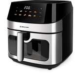 Аэрогриль с пароваркой, Объем: 7,6 л, Управление: сенсорное, 8 автоматических программ, Программа "мультиповар"Подсветка содержимого чаши , Антипригарное керамическое покрытие чаши, Мощность: 2000 Вт. Цвет- Черный