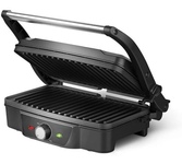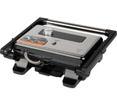 3 в 1: гриль, духовка, барбекю; мощность: 1600 Вт, тип управления: механическое, нагревательный элемент: нержавеющая сталь, регулировка температуры, диапазон температур нагрева: 40-230 °С, материал корпуса: металл, бакелит, материал панелей: металл, антипригарное NonStick PRO, размер рабочей поверхности: 280 x 170 мм, количество панелей: 2, регулировка высоты, максимальный угол открытия крышки: 180°, индикатор нагрева, индикатор питания, съемный поддон для сбора масла/жира, длина шнура: 0.7 м, напряжение: 220-240 В, 50-60 Гц, защита от поражения электротоком: класс I