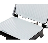 Количество программ/режимов: 1. Тип управления: механическое. Тип нагревательного элемента: ТЭН. Ширина рабочей поверхности: 23.5. Длина рабочей поверхности: 29.5. Антипригарное покрытие нагревательных частей: есть. Антипригарное покрытие: керамическое. Формы для готовки: для контактного гриля. Установка температуры приготовления: есть. Регулировка температуры приготовления: плавная. Лоток для сбора жира: есть. Индикатор включения: есть. Индикатор нагрева: есть. Автоматическое отключение (защитное): есть. Ненагревающаяся ручка: есть. Вес товара: 2.6. Раскрытие на 180 градусов: есть. Принадлежности в комплекте: Поддон для сбора жира.. Длина электрокабеля: 0.8. Габариты упаковки (ед) ДхШхВ: 0.37x0.15x0.365. Вес упаковки (ед): 3.57. Страна производства: Китай. Гарантия: 12 мес.. Цвет: серебристый и черный. Особенности: Устойчивое к царапинам керамическое покрытие пластин и глубокими канавками.. Материал корпуса: нержавеющая сталь. Размеры (ШхВхГ): 35.6 х 14.5 х 33.6см. Мощность: 2000 Вт. Особенности: раскрытие н