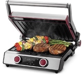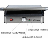 Максимальная мощность, Вт.: верхний нагрев 1000 Вт; нижний нагрев 1000 Вт Количество автоматических программ: 6 Ручной режим работы: есть Регулировка температуры: есть Регулировка времени: есть Варианты использования гриля: открытый/закрытый Съемные нагревательные панели: есть Покрытие нагревательных панелей: антипригарное Размер панелей, мм.: 320x220 Независимый нагрев панелей: есть Панели можно мыть в посудомоечной машине: да Съемный поддон для сбора жира: есть Функция размораживания: есть Индикаторы: индикатор цвета для напоминания о процессе приготовления Дисплей: есть, LED Комплектация: электрический гриль, двухсторонние панели с гладкой и гриль стороной, панель для венских и бельгийских вафель, термощуп для измерения температуры внутри продукта, гарантийный талон, инструкция на русском Материал корпуса: нержавеющая сталь Цвет: серебристый Электропитание, в., Гц.: 220-240, 50