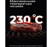 Объем чаши: 4.5. Количество программ/режимов: 14. Тип управления: сенсорное. Тип нагревательного элемента: ТЭН. Установка времени приготовления: есть. Антипригарное покрытие нагревательных частей: есть. Съемные формы: есть. Режимы/программы приготовления: запеченный батат; тарт; запеченная рыба; картофель фри; выпечка; стейк; куриные крылышки; куриные ножки; омлет на пару; булочка на пару; креветки на пару; рыба на пару; йогурт; сушка. Регулировка времени приготовления: плавная. Установка температуры приготовления: есть. Регулировка температуры приготовления: многоступенчатая, с шагом в 5 C. Информационный дисплей: есть. Возможность залива воды: есть. Индикатор включения: есть. Индикатор нагрева: есть. Звуковой сигнал: есть. Автоматическое отключение (защитное): есть. Ненагревающаяся ручка: есть. Вес товара: 5.3. Материал чаши: алюминий. Длина электрокабеля: 0.8. Габариты упаковки (ед) ДхШхВ: 0.46x0.297x0.42. Вес упаковки (ед): 6.8. Страна производства: Китай. Гарантия: 12 мес.. Цвет: серый. Особенности: Совм