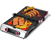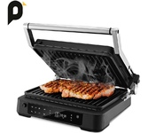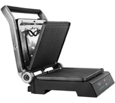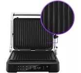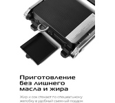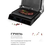 Количество программ/режимов: 6. Тип управления: электронное. Тип нагревательного элемента: ТЭН. Установка времени приготовления: есть. Ширина рабочей поверхности: 28. Длина рабочей поверхности: 22. Антипригарное покрытие нагревательных частей: есть. Съемные формы: есть. Список режимов/программ приготовления: стейк, куриные ножки, бургер, сосиски, сэндвич, рыба. Установка температуры приготовления: есть. Информационный дисплей: есть. Лоток для сбора жира: есть. Индикатор включения: есть. Индикатор нагрева: есть. Автоматическое отключение (защитное): есть. Вес товара: 3.8. Раскрытие на 180 градусов: есть. Длина электрокабеля: 0.7. Габариты упаковки (ед) ДхШхВ: 0.395x0.19x0.373. Вес упаковки (ед): 4.83. Страна производства: Китай. Гарантия: 12 мес.. Цвет: серебристый и черный. Материал корпуса: нержавеющая сталь/пластик. Размеры (ШхВхГ): 35.5 х 15 х 32см. Мощность: 2000 Вт. Температура: 80 - 230 °С. Количество программ/режимов: 6. Особенности: раскрытие на 180 градусов, лоток для сбора жира. Мощность: 2000 Вт. Т