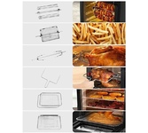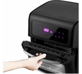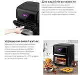 Экран ЖК-дисплей Тип управления Сенсорное Объем 6 л программы 11 предустановленных программ: Курица, Рыба, Морепродукты, Стейки, Колбаски, Овощи, Картофель, Пицца, Выпечка, Картофель фри, Тост Температура 80-200°C Нагревательный элемент Верхний и нижний Высокоскоростная циркуляция воздуха на 360° Да Подача пара Да Антипригарное покрытие корзины Да Внутренняя подсветка Да, можно использовать опционально Панель управления Сенсорная (цветные пиктограммы) Контейнер для воды для подачи пара Да, 140 мл Смотровое окно Да Простота очистки Да Можно мыть в посудомоечной машине Противень для приготовления можно мыть в посудомоечной машине. Цвет черный Габариты внутреннего пространства (Ш х В х Г) 26,7 x 35,7 x 35,5 см Вес 5,4 кг