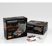 Мощность 1800–2100 Вт Напряжение 220–240 В, 50 Гц Защита от поражения электротоком класс I Материал корпуса нержавеющая сталь пластик Размеры одной панели 244 ? 313 мм Тип покрытия панелей антипригарное Индикация процесса приготовления светодиодная Максимальная температура нагрева 240 °С Ручной режим есть Индикация степени прожарки есть Автоматическое определение толщины закладываемого продукта есть Защита от перегрева есть Автоотключение по окончании приготовления Автоматические программы 7 шт. Автоматическое определение времени приготовления есть Длина шнура электропитания 0,8 м Отсек для шнура электропитания есть Габаритные размеры 356 ? 325 ? 168 мм Вес нетто 4,5 кг ±3% Комплектация гриль съемный поддон для сбора масла/жира съемные панели со встроенным нагревательным элементом книга рецептов сервисная книжка руководство по эксплуатации