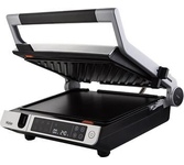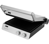Автоматическое отключение (защитное): есть. Антипригарное покрытие нагревательных частей: ДА. Вес товара: 4.8. Вес упаковки (ед): 5.92. Габариты упаковки (ед) ДхШхВ: 0.42x0.2x0.42. Длина рабочей поверхности: 24.4. Длина электрокабеля: 0.9. Звуковой сигнал: есть. Индикатор включения: есть. Индикатор нагрева: есть. Информационный дисплей: есть. Количество программ/режимов: 7. Лоток для сбора жира: есть. Раскрытие на 180 градусов: есть. Съемные формы: есть. Тип управления: механическое. Ширина рабочей поверхности: 31.3. Гарантия: 12 мес.. Мощность: -2100 Вт. Температура: 0-230 °С. Материал корпуса: нержавеющая сталь/пластик. Размеры (ШхВхГ): 37.7х16х32.7 см. Цвет: серый. Особенности: раскрытие на 180 градусов, лоток для сбора жира