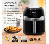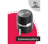 Мощность 1500 Вт, Объем 5 л,Сенсорное управление,8 автоматических программ, Антипригарное покрытие Non-Stick PRO, 4 в 1: гриль, жарка, выпечка, запекание, Диапазон температур нагрева от 80 до 200 °С,Таймер от 1 до 60 минут,Смотровое окно,Съемная корзина, Длина сетевого шнура 0.8 м,Технология Air Cycle