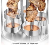 Мощность 900 Вт Шампуры 5 Нагрев инфракрасный Напряжение 220 В, 50 Гц Частота вращения шампуров 12 об/мин Размер устройства 217 х 177 х 460 мм