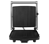 Электрогриль. Механическое управление. Мощность: 2000 Вт. Нагревательный элемент: ТЭН. Максимальная температура: 230 °С. Минимальная температура: 150 °С. Температуру приготовления можно регулировать. Тефлоновое антипригарное покрытие. Съемные панели, размер панелей: 23*29 мс. Лоток для сбора жира. Фиксация в закрытом состоянии. Индикатор включения. Индикатор накрева. Ненагревающаяся ручка, разкрытие на 180 градусов. Цвет: Серебро/черный.