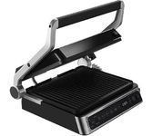 Тип управления: электронное Регулировка температуры: есть Варианты использования гриля: закрытый/открытый/105° Съемные нагревательные панели: есть, двусторонние (рифленая и плоская) Покрытие нагревательных панелей: антипригарное Размер панелей, мм.: 31x26 Съемный поддон для сбора жира: есть Индикаторы: работы, нагрева Комплектация: электрический гриль, 2 съемные панели, поддон для сбора жира, пластиковая лопатка, гарантийный талон, инструкция на русском языке Материал корпуса: сталь Цвет: серебристый Максимальная потребляемая мощность, Вт.: 2000 Электропитание, в., Гц.: 220-240, 50 Дополнительная информация: панели можно мыть в посудомоечной машине