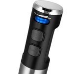 Блендер погружной многофункциональный 3 в 1 Мощность: 1200 Вт Напряжение: 220-240В, 50/60Гц Объем чаши: 0.8л Объем стакана: 0.6л Кол-во скоростей: 6 Импульсный режим (турбо): да Тип двигателя: DC Скорость вращения двигателя 10.000 – 16.000 об./мин.
