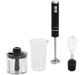 Блендер погружной, максимальная мощность 800 Вт, компактый размер - диаметр корпуса 42 мм, 2 скорости, насадка-блендер из нержавеющей стали, съемная насадка-венчик из нержавеющей стали, мини-измельчитель 500 мл, мерный стакан 700 мл, цвет черный с серым