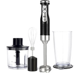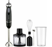 Блендер погружной, набор из 4-х предметов, мощность 1400 ватт, металлическая нога, 2 скорости, режим турбо, плавная регулировка переменной скорости, нож блендера из нержавеющей стали, насадка -венчик, мерный стакан-700 мл, измельчитель-500 мл