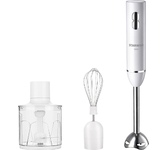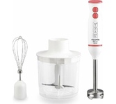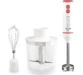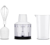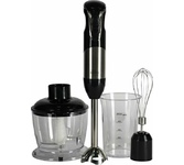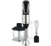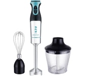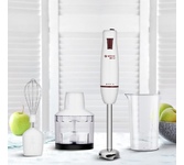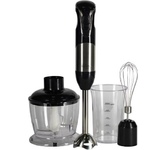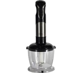 Погружной блендер, мощность 750W, современный эргономичный дизайн, пульсовый режим работы, 2 скорости, режим "Турбо", лезвия из нержавеющей стали, металлическая нога блендера, венчик для взбивания, чаша с ножом для рубки и измельчения, 400 мл; автоматичес