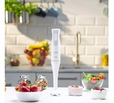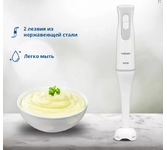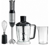 Максимальная мощность 800 Вт, Количество скоростей 20, Материал корпуса пластик, Материал погружной части металл, Плавная регулировка скорости, Длина кабеля питания 1.2 м , Мерный стакан 0.6 л, чаша для измельчения 500 мл (с крышкой) .