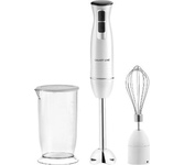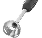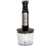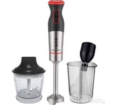 Погружной блендер, мощность 750W, современный эргономичный дизайн, пульсовый режим работы, 2 скорости, лезвия из нержавеющей стали, металлическая нога блендера, венчик для взбивания, насадка для приготовления пюре, чаша с ножом для рубки и измельчения, 400 мл; автоматическая блокировка при неправильно установленной насадке, удобство и простота в обращении и чистке.