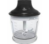 Погружной блендер, мощность 950W, пульсовый режим работы, 2 скорости, металлическая нога блендера, венчик для взбивания, чаша объемом 1250 мл с ножом из 4 лезвий для рубки и измельчения, автоматическая блокировка при неправильно установленной насадке.
