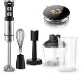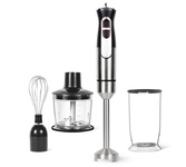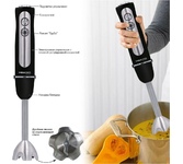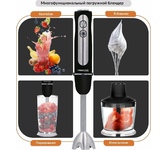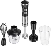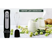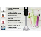 Мощность 1000 Вт, 5 скоростей, Плавная регулировка скорости, Венчик для взбивания, Измельчитель 500 мл, Мерный стакан 600 мл, Лезвие из нержавеющей стали, Турборежим. Цвет Черный
