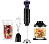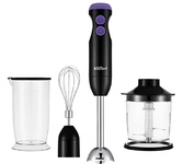 Мощность 1500 Вт Объем 0.65 л, 0.8 л Кол-во скоростей 15 Режимы Турбо Материал корпуса Пластик, Сталь Особенности LED-подсветка, Плавный регулятор мощности, Специальная заточка лезвий Комплект аксессуаров Мерный стакан (800 мл), Насадка для пюре, Насадка-капучинатор, Насадки для взбивания, Насадки для замешивания, Чоппер (650 мл) Тип конструкции Погружной Гарантия 1 год