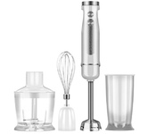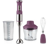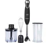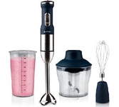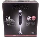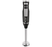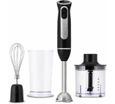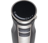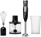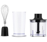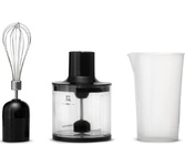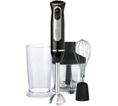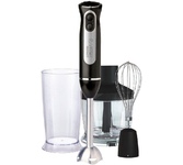Мощность 1000 Вт. Погружная часть и лезвия из нержавеющей стали. Корпус из пластика с покрытием soft-touch, декорирован нержавеющей сталью. Плавная регулировка скорости. 5 скоростей. Турборежим. Скорость вращения: 15000 об/мин ±15%. Насадка-венчик для взбивания. Стакан для смешивания 600 мл. Насадка для приготовления пюре. Насадка-блендер для измельчения и смешивания. Насадка-измельчитель объёмом 500 мл. Индикация включения с синей подсветкой. Длина шнура 1,2 м.. Электропитание 220-240 В., 50-60 Гц.