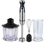 Тип Ручной.Материал корпуса Нержавеющая сталь.Мощность 1000 Вт.Скоростные режимы 2.Управление Механическое.Цвет Черный.Количество приборов 3 в 1: измельчитель, миксер, блендер.Объем мерного стакана 600 мл.Объем чаши измельчителя 500 мл.Блендерная насадка (нержавеющая сталь).Венчики для взбивания.Мерный стакан.Вес брутто 1.61 кг.