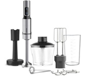 Мощность 1500 Вт Объем 0.65 л, 0.8 л Кол-во скоростей 15 Режимы Турбо Материал корпуса Пластик, Сталь Особенности LED-подсветка, Плавный регулятор мощности, Специальная заточка лезвий Комплект аксессуаров Мерный стакан (800 мл), Насадка для пюре, Насадка-капучинатор, Насадки для взбивания, Насадки для замешивания, Чоппер (650 мл) Тип конструкции Погружной Гарантия 1 год