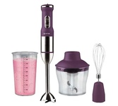 Тип: погружной Мощность: 900 Вт Материал погружной части: нержавеющая сталь Скоростей/режимов: 8, плавная регулировка скорости Насадки: измельчитель, венчик для взбивания Чаша: 0.5 л, пластик