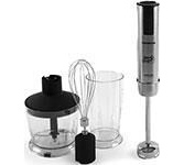 Мощность 1500 Вт Лезвия из титана Погружная часть блендера с нейлоновым покрытием для предотвращения повреждения посуды Корпус из пластика, декорирован нержавеющей сталью Плавная регулировка скорости Насадка-миксер для взбивания с нейлоновым покрытием для предотвращения повреждения посуды Стакан для смешивания 800 мл Насадка-блендер для измельчения и смешивания Насадка-измельчитель объемом 600 мл Электропитание 220-240 В, ~ 50-60 Гц