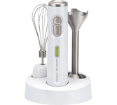 Тип: погружной. Мощность: 700. Количество скоростей/режимов: 2. Измельчитель: в комплекте. Венчик для взбивания: в комплекте. Материал погружной части: нержавеющая сталь. Электропитание: от аккумулятора. Регулировка скорости вращения: есть. Материал ножей: нержавеющая сталь. Мерный стакан: есть. Материал корпуса: пластик. Особенности: До 30 минут автономной работы. Время зарядки аккумулятора 5 часов. Чаща для измельчения 0,5 литра. Мерный стакан с крышкой объемом 0,7 литра. Аккумулятор: Li-ion 2000 мАч, 11,1 В.. Габариты упаковки (ед) ДхШхВ: 0.25x0.18x0.27. Вес упаковки (ед): 0.93. Гарантия: 24 мес.. Цвет: белый. Тип: погружной. Насадки: измельчитель, венчик для взбивания. Мощность: 700 Вт. Материал погружной части: нержавеющая сталь. Скоростей/режимов: 2