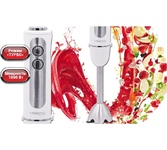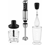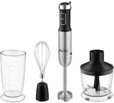 Мощность 1500 Вт LED-дисплей 12 скоростных режимов Лезвия из титана Погружная часть блендера с нейлоновым покрытием для предотвращения повреждения посуды Корпус из пластика, декорирован нержавеющей сталью Плавная регулировка скорости Насадка-венчик для взбивания с нейлоновым покрытием для предотвращения повреждения посуды Стакан для смешивания 800 мл Насадка-блендер для измельчения и смешивания Насадка-кофемолка Насадка-измельчитель объемом 600 мл Электропитание 220-240 В, ~ 50-60 Гц