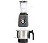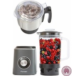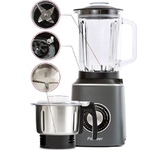 Стационарный блендер с кофемолкой, максимальная мощность 800 Вт, емкость кувшина 1.5 литра , материал емкости блендера - стекло, емкость измельчителя-кофемолки 500 гр, металлическая кнопка регулировки скорости с лазерной обработкой, 2 скорости, импульсный режим, защита двигателя от перегрева, ножи из нержавеющей стали, высокоэффективные ножи - 6 лепестков, измельчает фрукты, орехи, лед, возможность добавления продуктов через специальное отверстие в крышке, противоскользящие ножки