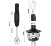 Тип: погружной. Мощность: 1300. Количество скоростей/режимов: 2. Турборежим: есть. Измельчитель: в комплекте. Венчик для взбивания: в комплекте. Материал погружной части: нержавеющая сталь. Электропитание: от сети. Регулировка скорости вращения: есть. Регулятор скорости вращения: плавный, бесступенчатый. Материал ножей: нержавеющая сталь. Другие насадки: насадка-блендер, насадка для пюре. Мойка в посудомоечной машине: да, можно мыть съемные части. Мерный стакан: есть. Длина сетевого шнура: 1.5. Защита от перегрузки: есть. Материал корпуса: нержавеющая сталь/пластик. Вес товара: 1.44. Режим измельчения: есть. Особенности: Технология SilentPRO: работает в 2 раза тише. Технология PROtect+ двойная защита двигателя (от перегрева и перегрузки) обеспечивает надежность и долговечность.. Габариты упаковки (ед) ДхШхВ: 0.15x0.23x0.26. Вес упаковки (ед): 1.47. Страна производства: Китай. Гарантия: 24 мес.. Размеры (ШхВхГ): 65 х 405 х 65 мм. Цвет: черный/серебристый. Материал погружной части: нержавеющая сталь. Особенност