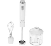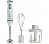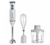 Блендер погружной, максимальная мощность 800 Вт, компактый размер - диаметр корпуса 42 мм, 2 скорости, насадка-блендер из нержавеющей стали, съемная насадка-венчик из нержавеющей стали, мини-измельчитель 500 мл, цвет белый с черным