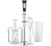 Ручной блендер 3 в 1: блендер/миксер/измельчитель, Мощность: 800 Вт, 2 скоростных режима, Тип управления Механический, Скорость работы в основном режиме 15000 об/мин., Насадки (блендер, венчик) из нержавеющей стали, Объем чаши измельчителя 500 мл, Мерный стакан 600 мл, Защита от перегрева/перегрузки, Параметры электропитания 220-240 В, 50-60 Гц
