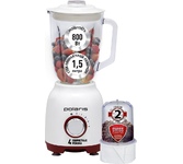 Мощность 800 Вт.Объем кувшина,1500 мл.Двусторонняя шкала уровня наполнения. 4 скоростных режима.Импульсный режим.Стальной нож с 4 лезвиями. Специальное отверстие в крышке для добавления ингредиентов в процессе работы. Специальная форма ножей для эффективного перемешивания.Подходит для колки льда и приготовления замороженных напитков.Компактный мини-измельчитель для перемалывания зёрен кофе, приготовления небольших порций соусов, дробления орехов, измельчения пряных трав и овощей.Съемное дно кувшина для удобства очистки.Cъемная крышка.Прорезиненные нескользящие ножки.Удобен в применении и очиcтке.