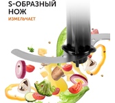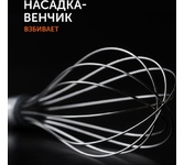Блендер погружной, набор - 7 предметов, мощность 1800 ватт, специальный регулировочный "шатл" со светодиодной подсветкой и плавной регулировкой скорости, до 10 режимов, цельнометаллическая ножа блендера, 4-х лепестковый S-образный стальной нож, S- образный нож измельчителя, измельчитель с крышкой - 500 мл, мерный стакан с крышкой - 600 мл, насадка - венчик, насадка - миксер( биттеры) насадка для вспенивания молока, насадка для приготовления пюре со стальным ножом, защита двигателя от перегрузок, защита двигателя от перегрева, хромированные вставки на корпусе, цвет корпуса - черный