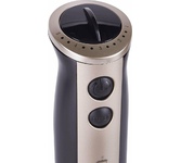 Тип погружной Цвет черный/шампань Тип управления электромеханический Номинальная мощность 750 Вт Максимальная мощность 1200 Вт Материал корпуса металл пластик Скорость работы в основном режиме 9000 - 15000 об/мин Режим турбо есть Скорость работы в турборежиме 16000 об/мин Плавная регулировка скорости есть Чаша измельчителя да Мерный стакан есть Материал погружной части нержавеющая сталь Объем чаши измельчителя 500 мл Объем мерного стакана 600 мл Насадка-блендер есть Насадка-венчик есть Форма ножа S-образный Защита от поражения электрическим током класс II Защита от перегрева есть Защита от перегрузки есть Длина шнура электропитания 1 м Габаритные размеры 375 ? 63 ? 63 мм Вес нетто 1.3 кг ± 3% Комплектация блок электродвигателя, чаша измельчителя с крышкой, S-образный нож измельчителя, насадка-блендер, насадка-венчик, переходник для насадки венчика, стакан для смешивания, сервисная книжка, руководство по эксплуатации