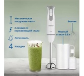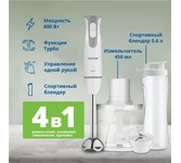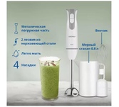 Погружной блендер ZELMER Мощность - 800 Вт, 2 скорости, функция: "Турбо", чаша с измерительной риской, веньчик для взбивания, измельчитель, насадка для смешивания спортивного питания, металлическая погружная часть