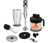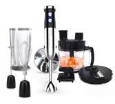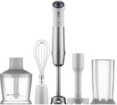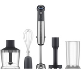 "Тип погружной Цвет серый Тип управления электромеханический Номинальная мощность 1600 Вт Максимальная мощность 1800 Вт Материал корпуса металл пластик Скорость работы в основном режиме 10000 - 15000 об/мин Режим турбо есть Скорость работы в турборежиме 15000 об/мин Плавная регулировка скорости есть Скорости работы плавная регулировка скорости Чаша измельчителя да Мерный стакан да Материал погружной части металл Объем чаши измельчителя 500 мл Объем мерного стакана 600 мл Объем стакана для смешивания 600 мл Цвет корпуса серый Насадка-блендер есть Насадка-венчик есть Насадка-пюре есть Форма ножа 4-лепестковый с титановым покрытием Защита от поражения электрическим током класс II Защита от перегрева есть Защита от перегрузки есть Индикация светодиодная Длина шнура электропитания 1,1 м Напряжение 220–240 В, 50/60 Гц Габаритные размеры 60 ? 430 ? 67 мм Вес нетто 1,6 кг ± 3% Комплектация блок электродвигателя насадка-блендер насадка-венчик переходник для насадки-венчика стакан для смешивания насадка для приготовлен