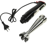 Тип: погружной. Мощность: 1000. Турборежим: есть. Материал погружной части: нержавеющая сталь. Электропитание: от сети. Регулировка скорости вращения: есть. Регулятор скорости вращения: плавный, бесступенчатый. Материал ножей: нержавеющая сталь. Мойка в посудомоечной машине: да, можно мыть съемные части. Мерный стакан: есть. Длина сетевого шнура: 1.2. Материал корпуса: пластик. Вес товара: 1.3. Габариты упаковки (ед) ДхШхВ: 0.195x0.107x0.265. Вес упаковки (ед): 1.3. Страна производства: Китай. Гарантия: 24 мес.. Размеры (ШхВхГ): 10.2 х 26.3 х 19.1 мм. Цвет: белый/серебристый. Мощность: 1000 Вт. Материал погружной части: нержавеющая сталь. Тип: погружной. Режимы: турборежим. Скоростей/режимов: плавная регулировка скорости